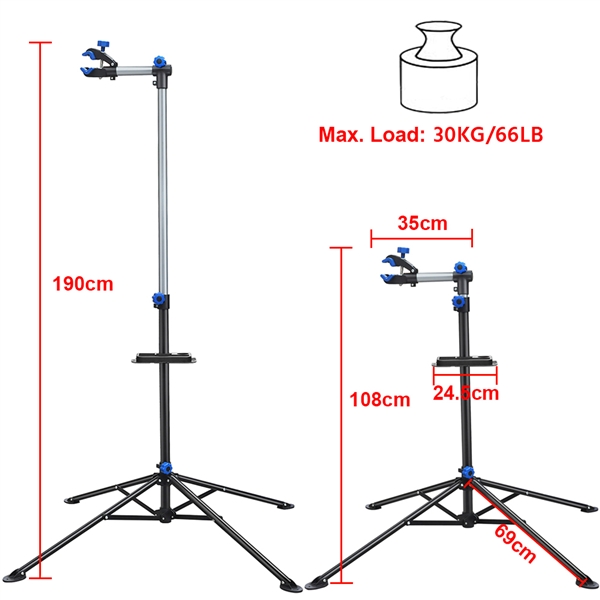 Patogus ir stabilus dviračių remonto stovas su 360° pasukamu spaustuku, teleskopiniu aukščio reguliavimu ir keturiomis sulankstomomis kojomis. Tvirtas plieninis rėmas užtikrina saugumą ir stabilumą, o guminis spaustukas apsaugo dviračio dažus. Komplekte – įrankių dėklas ir priekinio rato stabilizatorius. Puikus pasirinkimas tiek namams, tiek profesionalams.