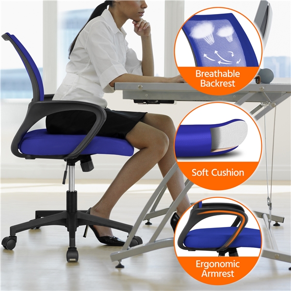 🪑 Ergonomiška mėlyna biuro kėdė su tinkliniu atlošu – komfortas ir funkcionalumas kasdieniam darbui