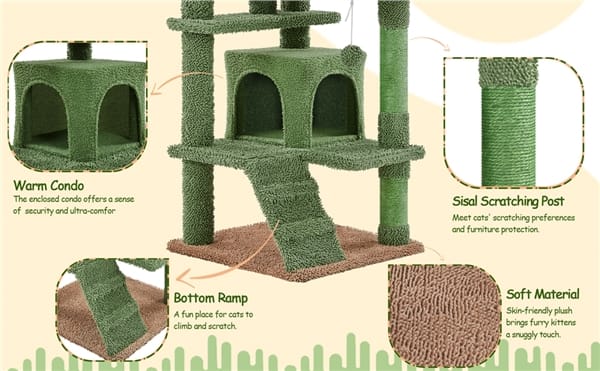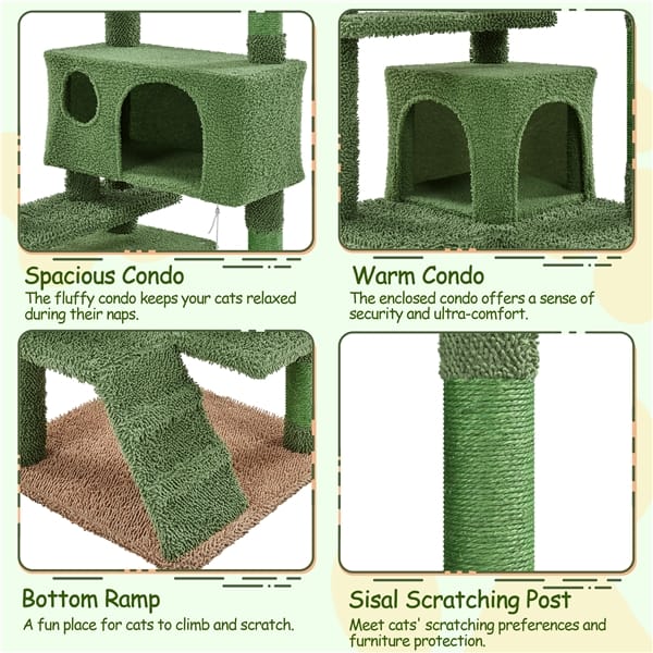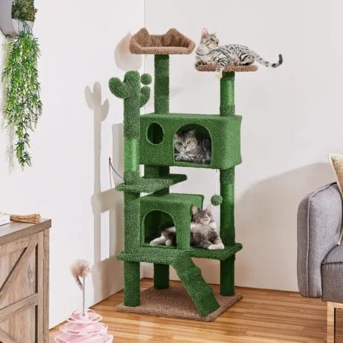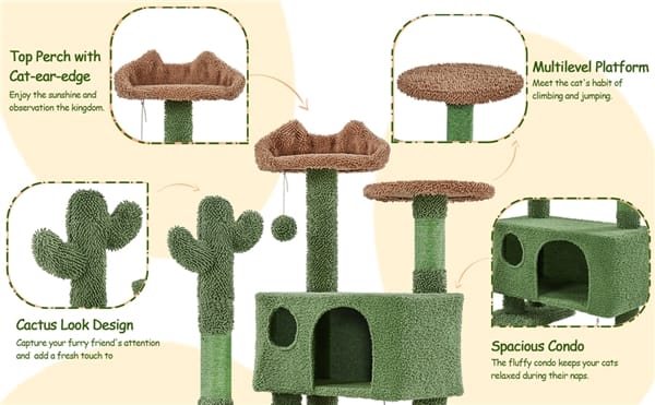 Kačių draskyklė žalios spalvos kurios aukštis yra 138 cm, kaktuso imitacijos su galimybe pritvirtinti prie sienos .